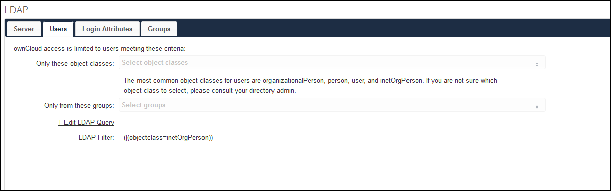 これらの設定を使用して、ownCloud アクセスを特定のグループのメンバーまたは Posix グループのみに制限できます。すべてのグループは「グループ」オブジェクト クラスを持ちますが、Posix グループだけが「posixGroup」オブジェクト クラスを持ちます。
