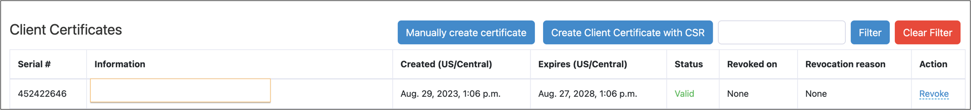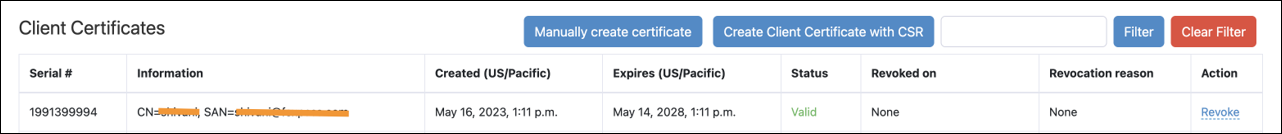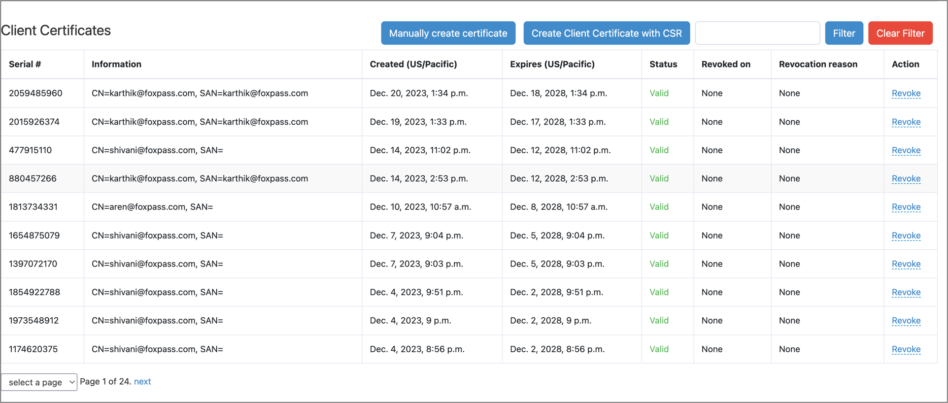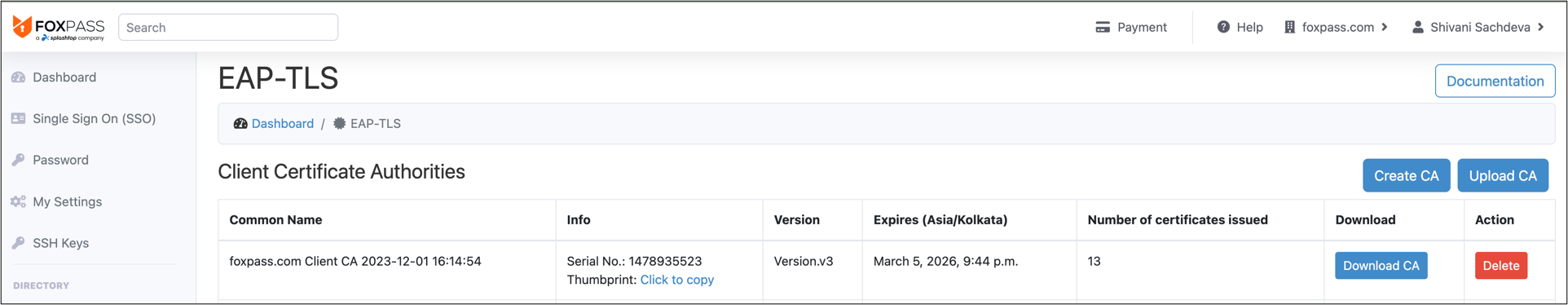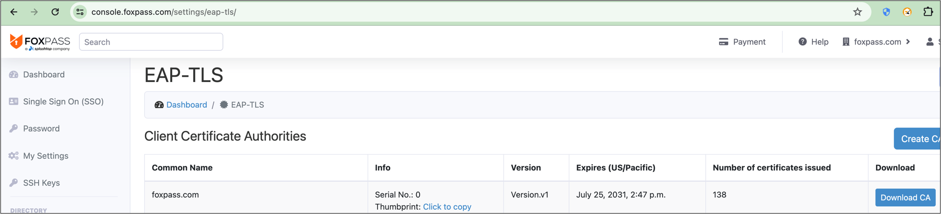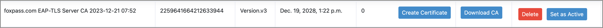 - 新しく発行された証明書は、FoxpassコンソールのEAP-TLSページの[Client certificates]セクションにも表示されます。