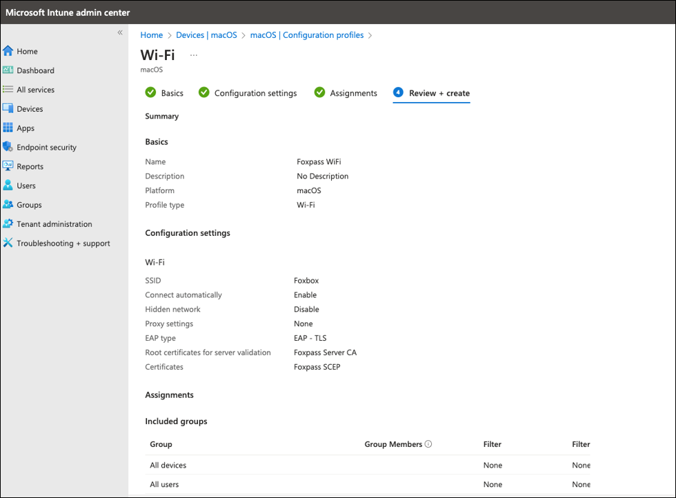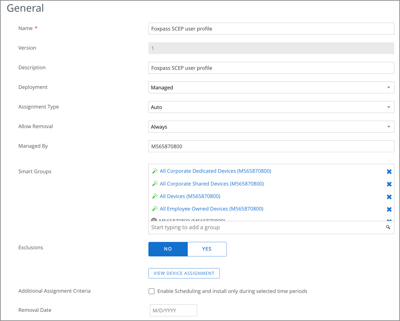 - この SCEP プロファイルをデバイス/ユーザーに割り当て、[Save] をクリックします。