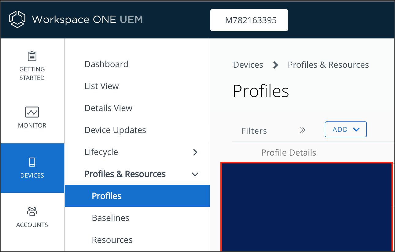 エンドポイント マネージャーで、 [デバイス] → [configuration profiles] に移動します