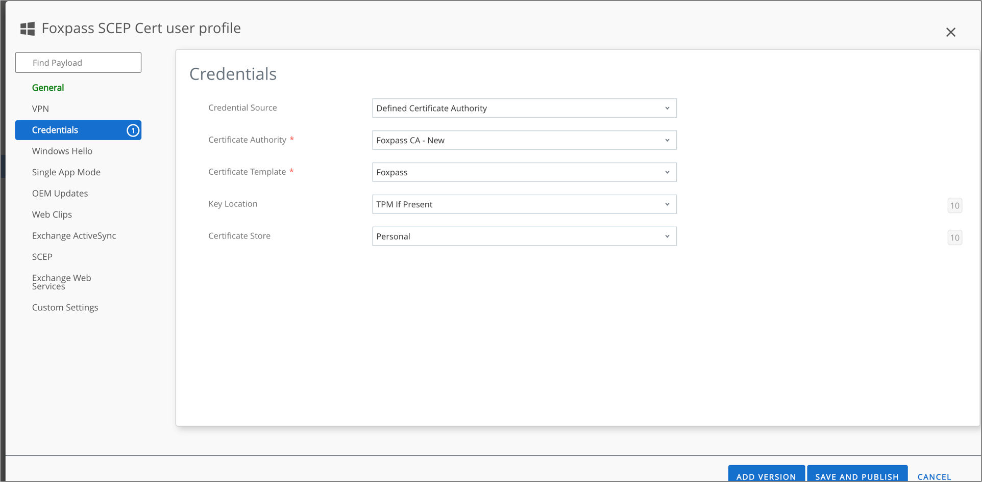 - Challenge type- Static - FoxpassコンソールのSCEPページからチャレンジパスワードをここに貼り付けます