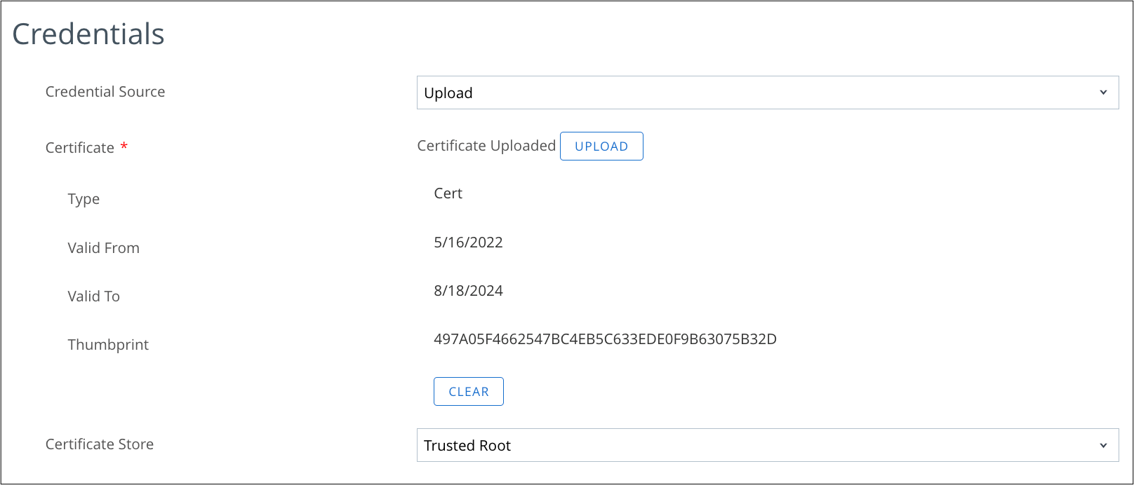 - フィンガープリント - [証明書から作成] をクリックし、先ほどダウンロードした CA 証明書を選択します。クライアント CA の拡張子を .crt から .cer に変更してください。