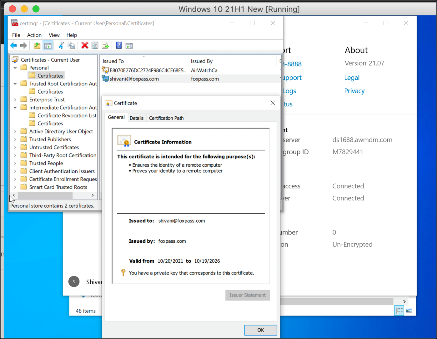 これで Windows コンピューターのセットアップが完了し、ユーザーはユーザー名とパスワードを入力する代わりに、証明書を使用して Wi-Fi への認証を行うことができます。